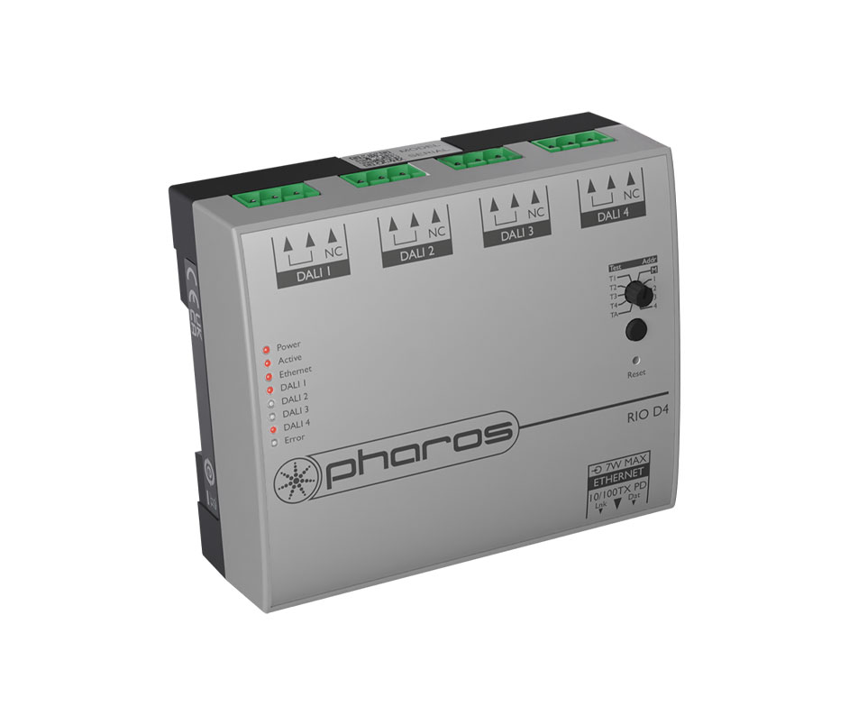 Contrôle jusqu'à 64 adresses DALI par port Réception des messages DALI tels que les panneaux mureaux ou les détecteurs de présence Configuration via le logiciel Designer 2 (à partir de la version 2.15.1) ou le logiciel Pharos Expert (à partir de la version 2.0) Maximum 16 boitiers EDN sur un LPC 10, 32 sur un LPC2, 64 sur un LPC 4 et 100 sur un LPC X, VLC et VLC + Sur le logiciel Designer uniquement: > Fonction de planification automatique et test de temps de fonctionnement des projecteurs, requête automatique du niveau de batterie et des heures des lampes, résultat des tests et des erreurs sur la page web > Détection et report de l'état de l'alimentation du bus DALI.